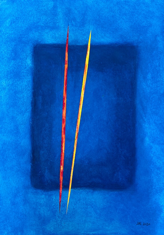 Toute petite production pour cause de confinement. J’ai enfin achevé deux grands formats, dont la réalisation s’est étalée sur plusieurs années. Quelques travaux sur papier ont vu le jour : aquarelles, pastels, encre de Chine. J’ai surtout consacré du temps à l’écriture d’un petit bouquin expliquant mon travail, et mes théories en matière de peinture. « Brèves d’Atelier », c’est le titre de cet ouvrage. Vous pouvez le commander pour 10€ à ce lien. adresse courriel