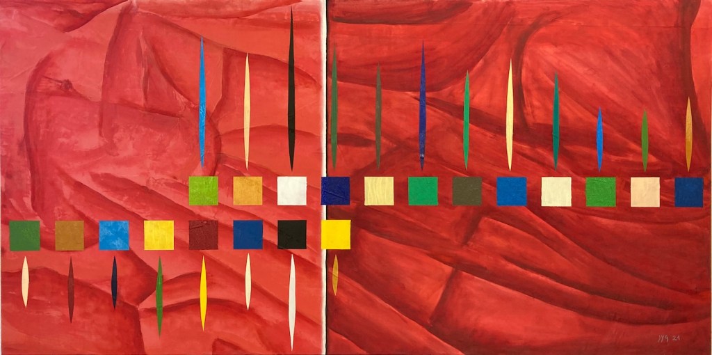 Année assez perturbée par le Covid, il s’en suit une production assez hétéroclite. Beaucoup de recherche au pastel gras, à l’encre de Chine, à l’aquarelle. Beaucoup de temps et d’énergie à la conception d’une scénographie d’une pièce de théâtre autour de Rothko. Voir ce lien. Et puis quand même quelques toiles en attente que j’ai pu finaliser.